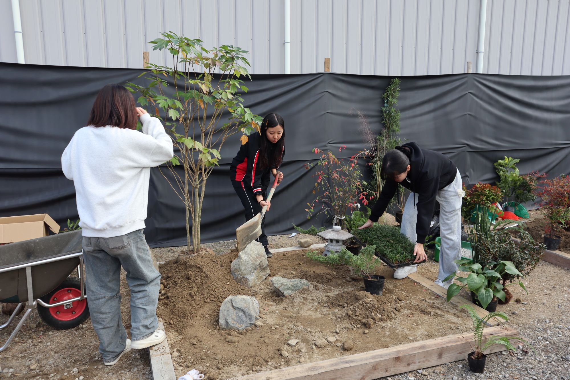 土を追加して起伏をつけながら、植栽していきます