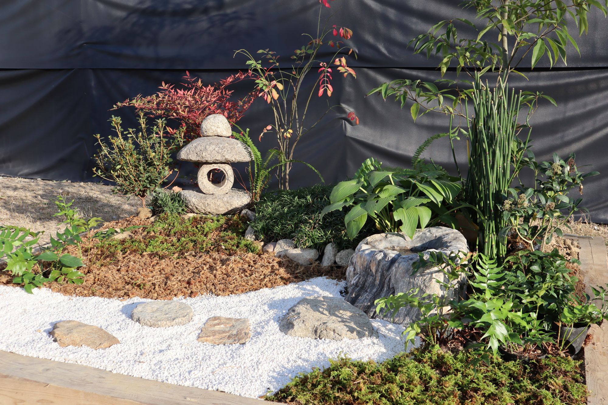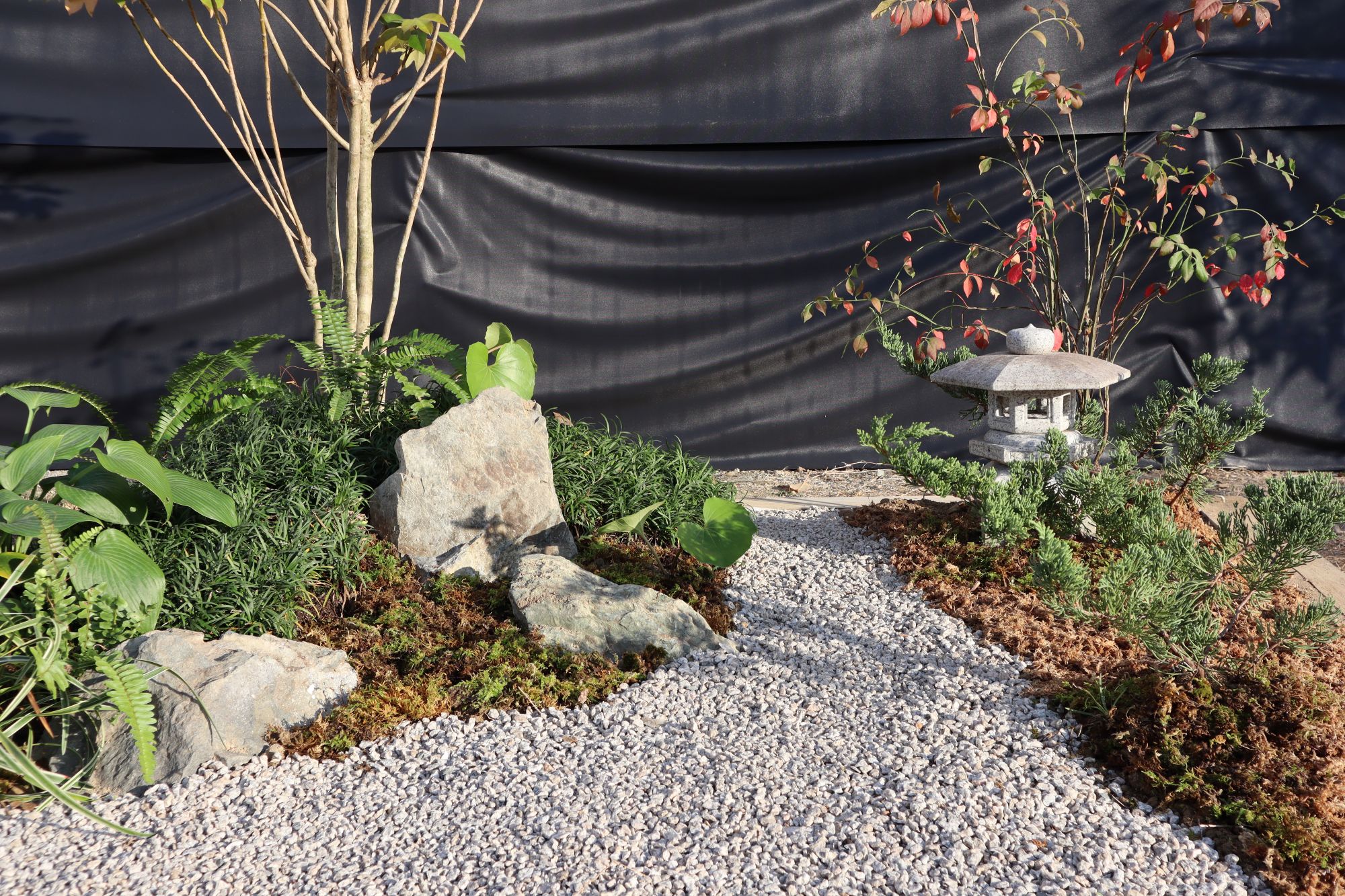 白川砂利やミズゴケで仕上げ